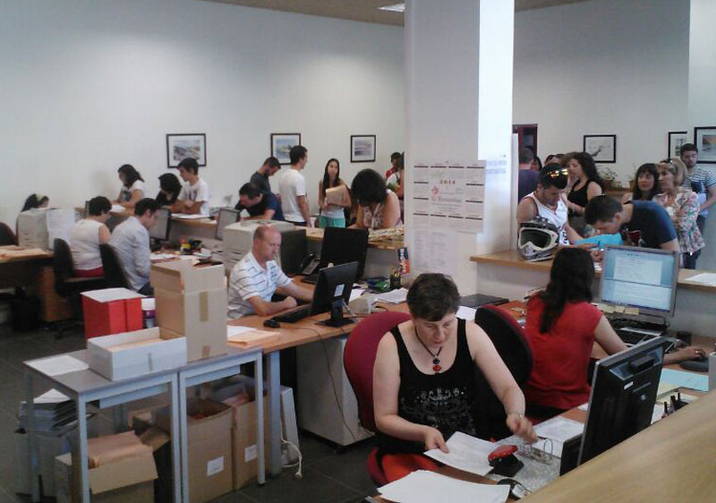 Colas en la matriculación presencial de primero en la secretaría de la UVA.