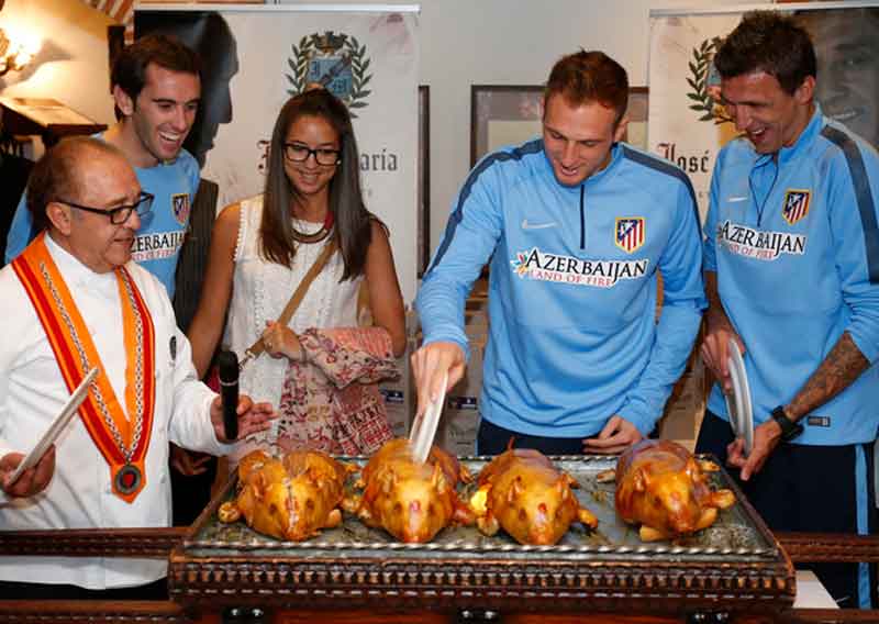 La plantilla del Atlético de Madrid se encargará, el 27 de octubre, de cerrar las jornadas que Procose dedica anualmente a la promoción de la marca de garantía Cochinillo de Segovia. Y lo harán en el campus Zambrano de la Universidad, y como no podía ser de otra manera, dando cuenta del cochinillo con marca número 1.000.000.