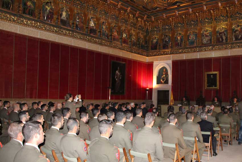 Lo que no cambia es el imponente marco, el Alcázar de Segovia, con la habitual presencia de autoridades locales, además del cuerpo docente del Real Colegio y los generales José Miguel de los Santos (general jefe de la artillería antiárea) y Felipe de la Plaza (general del mando de artillería de campaña). Algo que Alonso señaló en su parlamento, recordando a los alumnos que, salvo en situaciones extraordinarias, la ceremonia del Alcázar viene repitiéndose desde 1764, para hacerse una idea cuando se creó West Point, el Real Colegio, la “casa solariega de la artillería española”,  ya llevaba 47 años en la tarea de convertir lo que era una artesanía -la artillería antigua- en una ciencia. “Damas y caballeros cadetes, son ustedes depositarios de este legado. Hoy comienza su etapa artillera en el Real Colegio y deben ser conscientes del orgullo y la responsabilidad que asumen”, dijo el coronel.