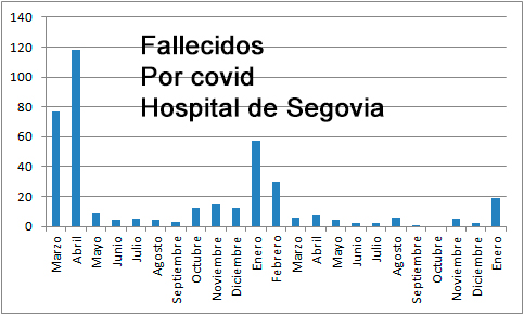 Las estadísticas de seguimiento de la epidemia de covid señalan un nuevo fallecimiento en el hospital de Segovia durante el fin de semana, lo que pone fin a una racha de una semana sin muertes, y eleva a 413 los habidos en el complejo hospitalario (1057 en toda la provincia de Segovia), siete en lo que va de mes.