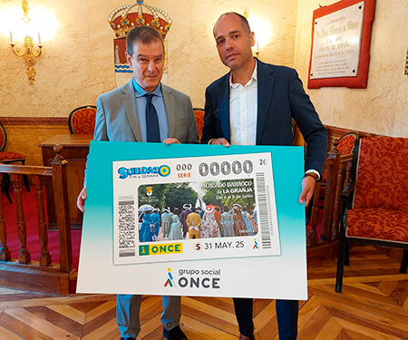 El acalde del Real Sitio de San Ildefonso, Samuel Alonso, y el delegado ONCE en Castilla y León, Ismael Pérez, han presentado este cupón en un acto que ha tenido lugar en la sede del Ayuntamiento, acompañados por el director de ONCE en Segovia, Claudio Congosto