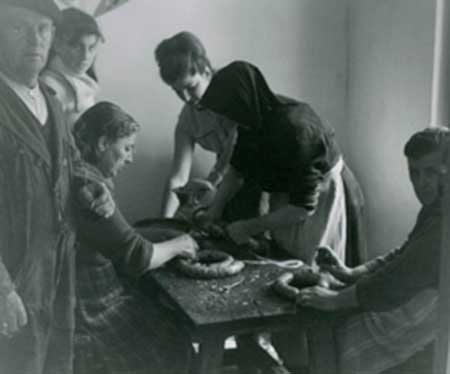 Una caída del 95% que refleja los cambios en la sensibilidad social sobre el sacrificio de animales -está prohibido el sacrificio con espectadores-, las mayores trabas burocráticas y de sanidad animal, así como el endurecimiento en los controles veterinarios de las muestras. En definitiva, factores que impulsan a las familias y grupos de amigos que aún elaboran sus chorizos y pancetas, a ahorrarse el trance del sacrificio y acudir al matadero a recoger la canal limpia. Ya sea de un animal alimentado en casa o bien de una canal comprada para la ocasión. La cuestión es que la matanza casera queda reducida a su parte más “gastronómica”, de destazado de las piezas, trinchado, embutido…
