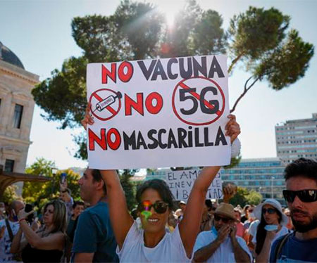 Y es que el talento de los hombres tiene un límite, pero su estupidez no. Domingo en la plaza de Colón, convocatoria contra las mascarillas en desafío al coronavirus. Veo en la tele una tipa que a voz en grito proclama que el bozal le impide hablar con Dios. En las redes, un antimascarilla informa que al llevarla la expansión de su chakra se debilita, no llega con nitidez al séptimo círculo, se queda estancada y luego padece de estreñimiento severo (entre otros males). Otro habla de como el 5G remodelará los flujos magnéticos interpersonales convirtiéndonos en zombis (y da estreñimiento, aporta el del chakra). Alguno dice que a él nadie le dice que se tiene que poner y otro asegura que el covid19 es un plan chino para acabar con la democracia.
