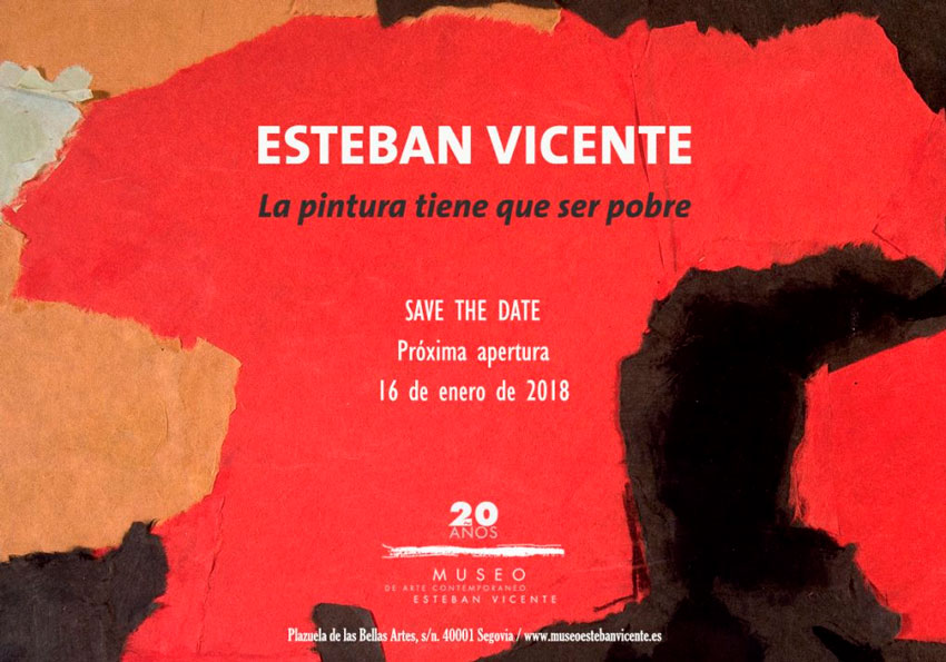 El Museo de Arte Contemporáneo Esteban Vicente aborda 2018, vigésimo aniversario de su apertura, con la idea de dar un decidido impulso a la divulgación del pintor de Turégano fuera de su provincia natal. Por primera vez desde la creación del museo, buena parte de la colección saldrá de los almacenes y de la sala de exposición permanente. Será con destino el MAC de Alicante, que expondrá una retrospectiva de Esteban Vicente del 10 de abril al 1 de julio.