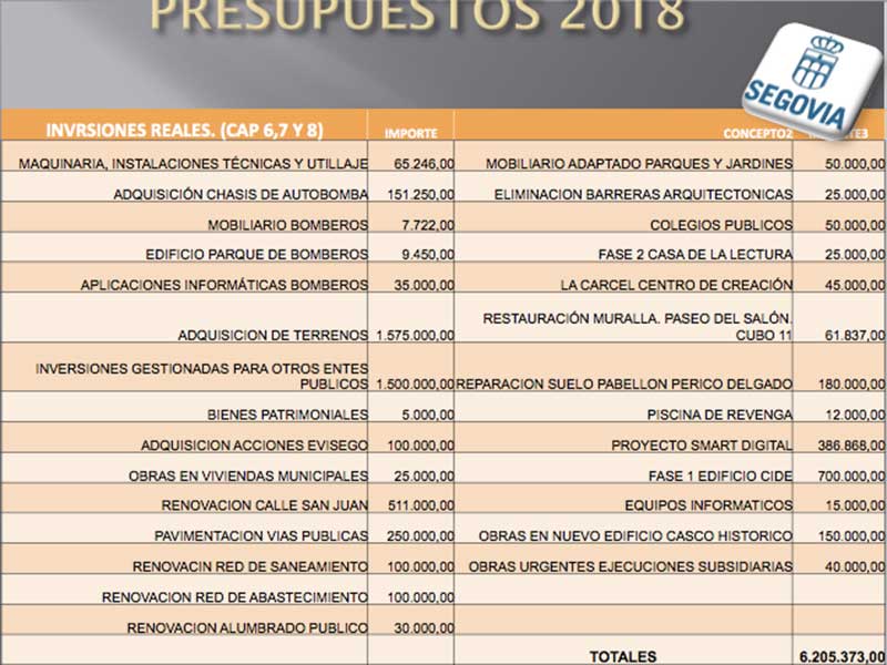 El borrador de presupuestos que el Gobierno del Ayuntamiento de Segovia ha divulgado este 23 de enero abriendo el periodo de negociación con los grupos políticos propone una cifra global de 63.333.603 euros, seis menos que en el ejercicio anterior (casi 8,7 puntos porcentuales) y también reduce las partidas para inversiones reales en las que los proyectos de gran tamaño brillan por su ausencia. Son los capítulos dirigidos a mantener la casa (1 y 2) los que se llevan los mayores porcentajes de las cuentas mientras que caen los ingresos directos a causa de la indefinición de la ley sobre las plusvalías. Los gobernantes prevén aumentar el endeudamiento hasta el 40 por ciento