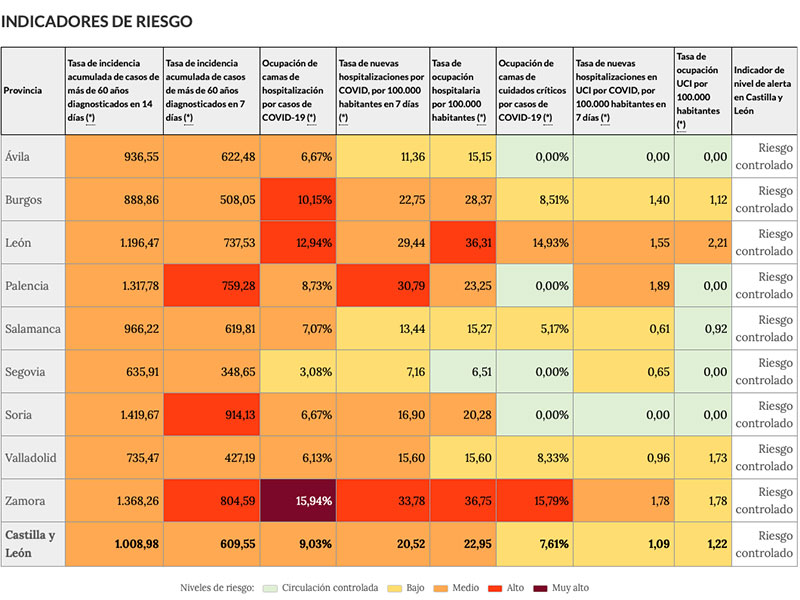 La tasa de incidencia acumulada en personas de más de 60 años — la única que se facilita oficialmente— ha crecido 30 puntos en el mismo periodo para situarse en 635 casos por cada 100.000 habitantes, aún en guarismo de riesgo medio, según el nuevo semáforo.