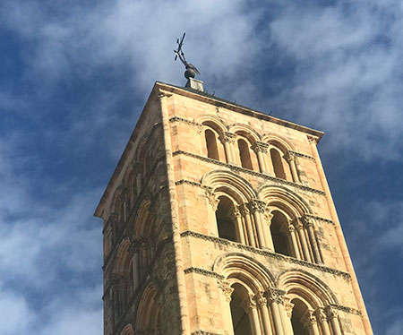 No es la primera vez. En la web segoguiados.eu definen San Esteban como un superviviente. Romántico del siglo XII, de hecho la torre es una de las más altas de España en su estilo, perdió su ábside original, sustituido por el desacertado actual que data del XVII. En 1886, el mismo año en que se le declaraba Monumento Nacional, un rayo destrozó el chapitel barroco del XVII y los trabajos de prolongación duraron 25 años. Aún debía estar en reparación en 1907 cuando un ciclón arrancó los andamios de madera, momento en que se determinó poner la cubierta de pizarra coronada con el famoso gallo.