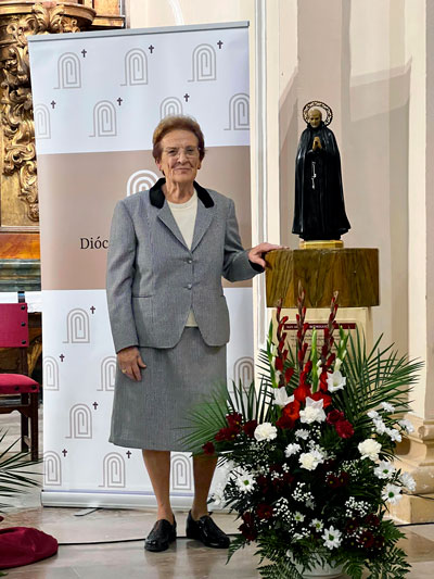 Este 2023, la distinción ha recaído en Teófila Barbado, la mujer de referencia en las labores de la iglesia de Nava de la Asunción. Teo, como así la conocen todos en el pueblo, de 92 años, madre, abuela y humilde trabajadora dentro y fuera del hogar, recogió ayer la aldaba que rememora el oficio de portero que tuvo el santo segoviano. Y lo hizo de las manos del obispo César Franco, que, junto con el comité organizador del premio, se desplazó hasta la localidad del Arciprestazgo de Coca-Santa María como muestra de cercanía con todos los pequeños pueblos.