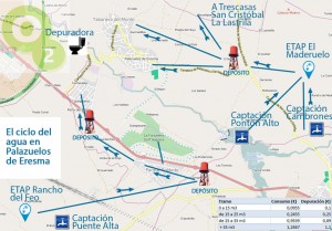 La piedra angular del embrollo es el agua. Para legalizar el plan parcial Confederación exige que se clarifique la situación legal del abastecimiento hidrológico, lo cual trasciende ya a Quitapesares para afectar también a Carrascalejo y Parque Robledo. Estos crecimientos del entorno de la CL-601 dependen de la estación potabilizadora del Rancho del Feo, que capta de Puente Alta y que es titularidad de Segovia capital. Existe un convenio con el ayuntamiento de Segovia que garantiza el suministro a estos núcleos de Palazuelos. Problema: no es legal, le falta la rúbrica de Confederación, lo cual a su vez abre un enorme fisura en la seguridad jurídica de las licencias de obras que se concedan en toda la zona.
