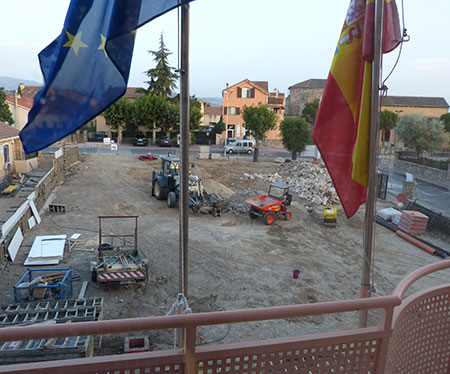Entre tanto, las obras de la plaza Mayor de Palazuelos siguen su curso (en la imagen).