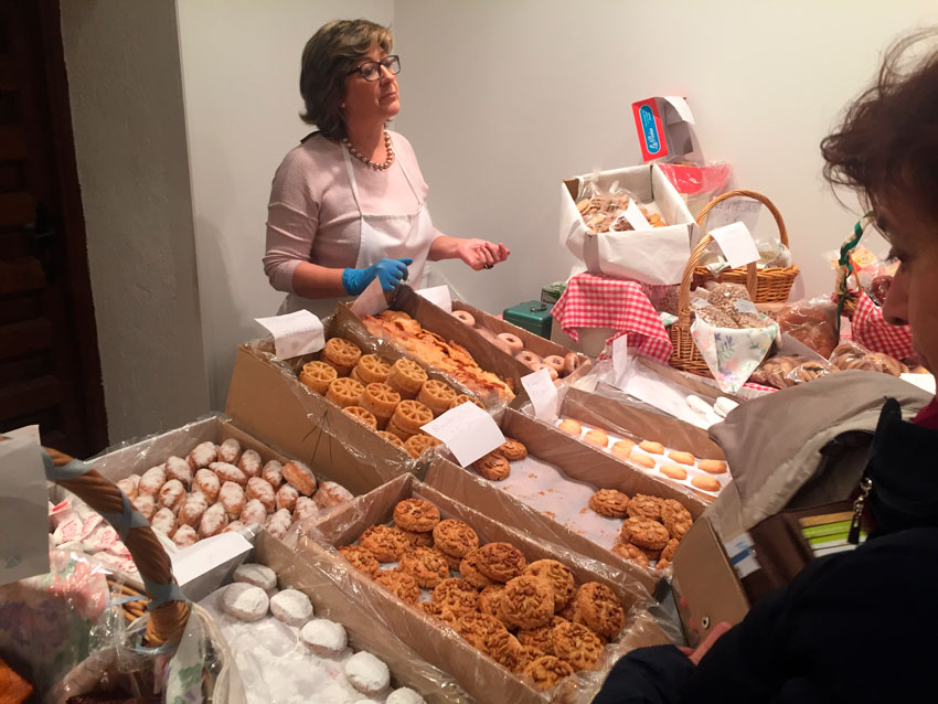 Llegado este punto del reportaje no se puede evitar el paso por el mostrador de los Bollos, allí encontramos a Inmaculada que, entre otras cosas, no ha visto mejor modo de pasar su santo que en las Caballerizas del Torreón. Desde este rincón “dulce”, el más visitado del Torreón, Inmaculada nos cuenta que lleva “muchos años colaborando, activamente unos 10” y sí, tiene motivo porque: “Ha entrado en la familia” y, añade que de esta manera se colabora no solo como la ayuda económica, el acto de presencia…