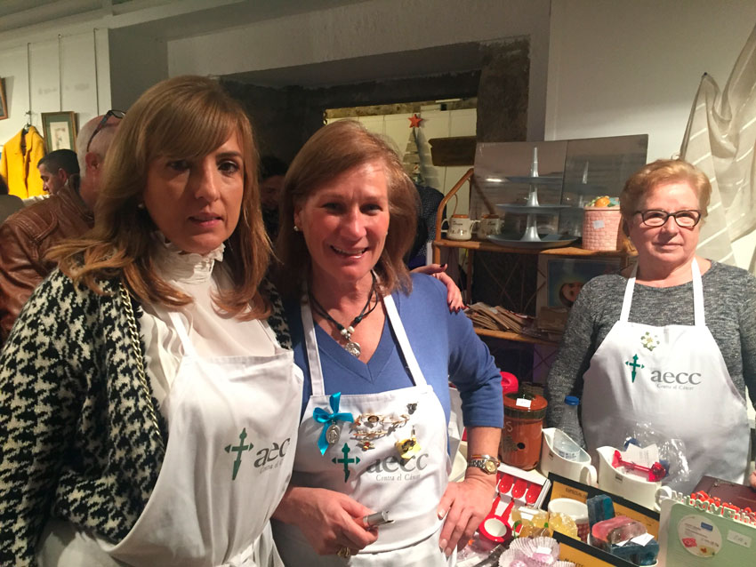 Merche y Candela, dos amigas que llevan 10 o 12 años colaborando con la Asociación Contra el Cáncer, que tienen un mostrador repleto de complementos de cocina, desde frascos para guardar alimentos hasta moldes de papel para las magdalenas pasando por jabones, caminos de mesa… Candela es del Cuerpo de voluntarias de “por que sí” pero Merche nos cuenta… “Me falta un pecho y, desde entonces, comencé a colaborar con la Asociación en todo lo que haga falta, a todo lo que me llamen. Para animar a todas las que se ven como yo”.