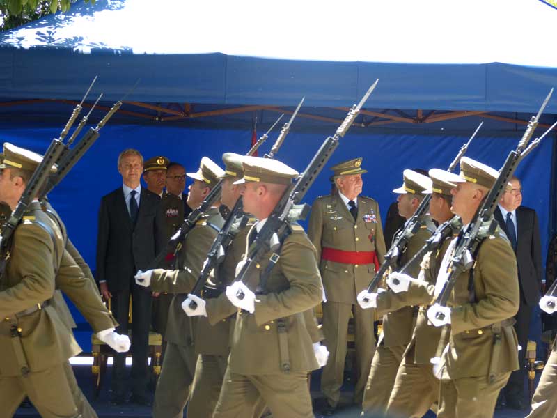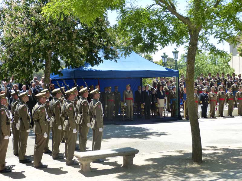 La parada militar y la presencia del Rey —recibido con las 21 salvas de honor reglamentarias— hizo que desde tiempo antes de la una de la tarde, cuando, con total puntualidad comenzó el acto, se congregara un buen número de ciudadanos, curiosos en su mayoría, pero también turistas a los que la visita les pilló de sorpresa, en las entradas de la plaza, en la que ya formaban los 204 alumnos del Colegio que participaron en el desfile.