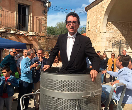 La fiesta empezó con la presencia de María González, directora general de Desarrollo Rural de la Junta de Castilla y León, y el pregón a cargo del sumiller José Luis Aragüe “Mazaca”, seguida de la pisada de uvas, este año a cargo del presidente de la Asociación de Camareros de Segovia, Javier Bermejo, impecable en su smoking. La feria terminó con una comida popular servida por el Portón de Javier, dos marranos asados al espeto, y actuación musical a cargo de Valshops. La vendimia “de verdad” empezará a finales de mes. Se esperan 177.000 botellas en un año de gran calidad y marcado por la moda del “vino de altura”, el de Valtiendas (940 metros de media en las 72 Has de producción) lo es.