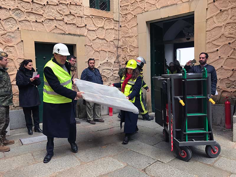 Lo que sí se hizo a la vista de todos y con guión fue el simulacro de incendio en el Alcázar, ese que conmemora el fuego de 1862 que dejó la fortaleza en su esqueleto de piedra, que presenció en primera línea, junto al general De Santos, la alcaldesa de la capital, Clara Luquero y al que llegó tarde, muy tarde, el también miembro del Patronato del Alcázar y presidente de la diputación, Francisco Vázquez, que sin embargo aún tuvo tiempo de colocarse en la foto, que siempre gusta tener un recuerdo de estas cosas.