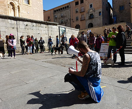 Mañana dominical intensa en el manifestódromo del Azoguejo. Al trasiego de turistas, y aprovechando el proscenio de la histórica jota masiva de la víspera, había que añadir el audio de animación de la Marcha Cofrade, la manifestación de la plataforma contra la planta en el Voltoya, y lo que te rondaré, porque eran las doce y amenazaban con coincidir bajo el acueducto los de la plataforma por la Justicia y Defensa del Animal, también con concentración anunciada (misma hora mismo lugar).
