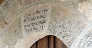 ‘Estas puertas y portal hicieron a su costa mateo sanchez i javier lavara año 1627’.