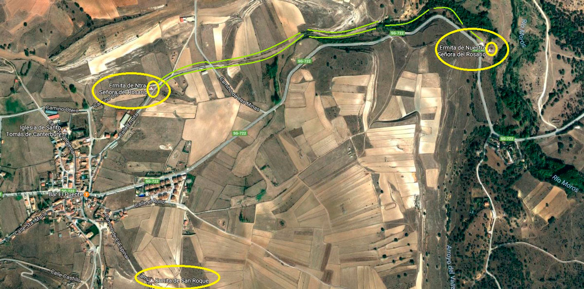 El mapa-satélite de ‘Google’, en Internet, es más generoso y nos indica dos ermitas de Ntra. Sra. del Rosario.