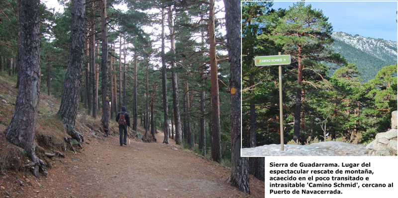 Ayer domingo 27 de diciembre, estando de marcha por la Sierra de Guadarrama, los padres de un joven de 15 años, alarmados por sus estornudos, y gracias a la nuevas tecnologías, alertaron al 1-2-3 para ser rescatados en el poco transitado e infranqueable Camino Schmid, a la altura de la pista del Escaparate’, a trescientos metros de la Residencia de Aviación de Los Cogorros y a casi un kilómetro del puerto de Navacerrada.