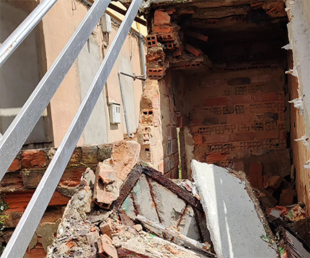 El día de hoy se reportó el derrumbe de una escalera exterior en una vivienda ubicada en la Carretera Villacastín en Segovia. La Policía Local ha intervenido en el lugar, donde reside un matrimonio de ancianos que no puede salir de su vivienda debido al incidente.