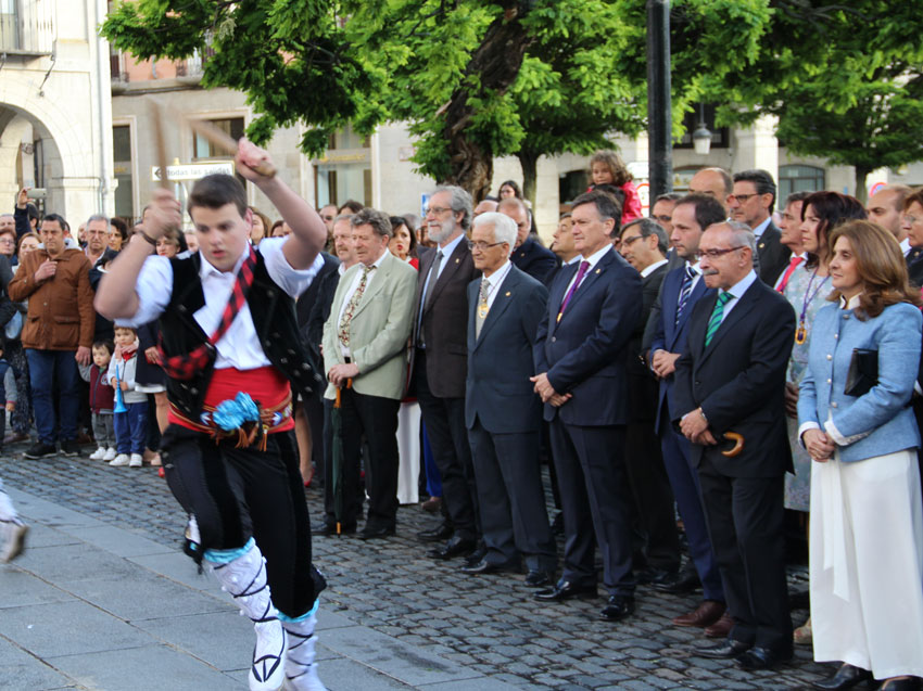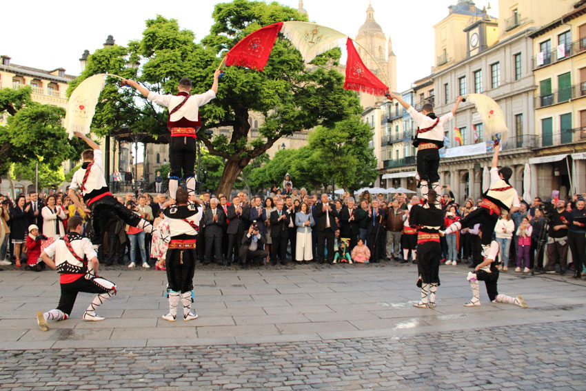 Que ayer celebró los agasajos por todo lo alto, en el Juan Bravo. Con ceremonia que empezó con paseíllo de los honrados desde la Diputación a la Plaza Mayor, donde aguardaban los chicos de la Octava de Fuentepelayo. Paloteo de honor y arco con pilar humano para dar acceso a la comitiva al centenario teatro. Espectacular.