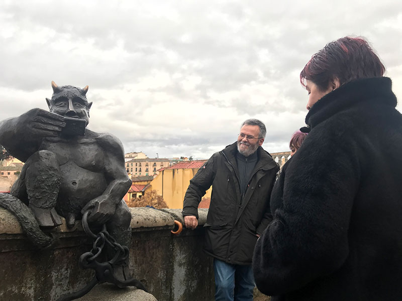 Inspirado en la leyenda del Acueducto, Abella propuso al Ayuntamiento la idea de crear una estatua con el diablillo que daba fama a la fábula y renunció a cualquier beneficio con la condición de que los fondos se destinaran a la restauración del patrimonio segoviano. Esto se convirtió en el centro de una controversia por la instalación de la estatua en la calle San Juan, una polémica que llega hasta nuestros días.