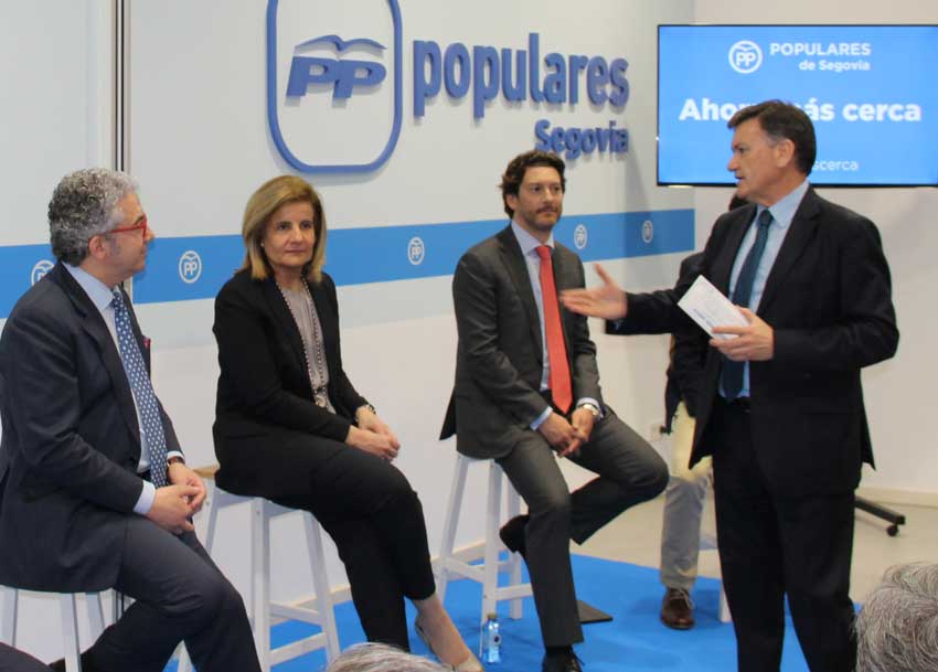 Tras un breve paseo, la ministra dirigió un acto de campaña en la sede del PP. Ante un centenar de militantes, y junto al presidente de la FES, Pedro Palomo, Pedro Fernández y Javier Vidaurreta de British American Tobacco, así como Alberto Bermejo en representación del Grupo Montenevado,  defendió la política laboral del ejecutivo y recordó que cuando el Partido Popular accedió al gobierno, el desempleo crecía en la provincia un 13 por ciento cada mes y hoy disminuye un 14 por ciento. “Es el camino que hay que seguir”, señaló.