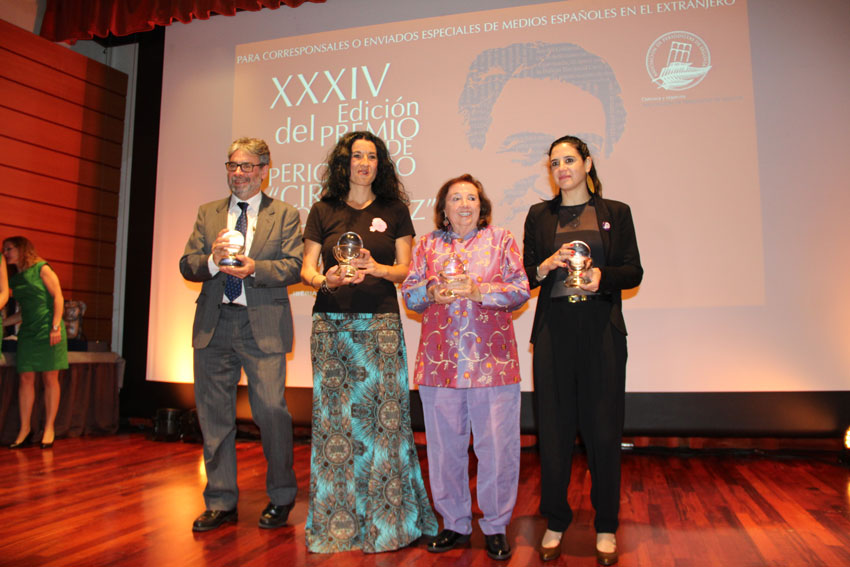 Carmen Sarmiento fue la protagonista de la noche. El Cirilo Rodríguez tiene más que una deuda con ella. Olvidada del premio mientras en los 70 y primeros 80 firmaba algunas de las páginas más impresionantes del periodismo español, la trigesimocuarta edición del galardón intentaba solventar la afrenta otorgando a la ya jubilada reportera el premio de honor, el segundo que se concede. No es extraño que el feminismo, la reivindicación del trabajo de la mujer en el gremio, estuviera en todos los parlamentos, tratándose además de reconocer a una periodista legendaria que ha hecho de la condición de la mujer un eje transversal de todos y cada uno de sus reportajes. Con un prolijo historial en todas las tormentas árabes de la última década, Sánchez se sumó a la causa celebrando la presencia de tres mujeres (de cuatro premiados) como forma de visualizar la gran cantidad de mujeres que trabaja en el sector. Mejor tarde que nunca.