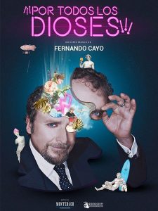 “¡¡¡Por todos los dioses!!!” es la continuación de sus anteriores espectáculos, “Salvaje” y “La terapia definitiva” con la que Cayo convierte el teatro en un lugar de humor y reflexión participada, un lugar naif de celebración y encuentro.