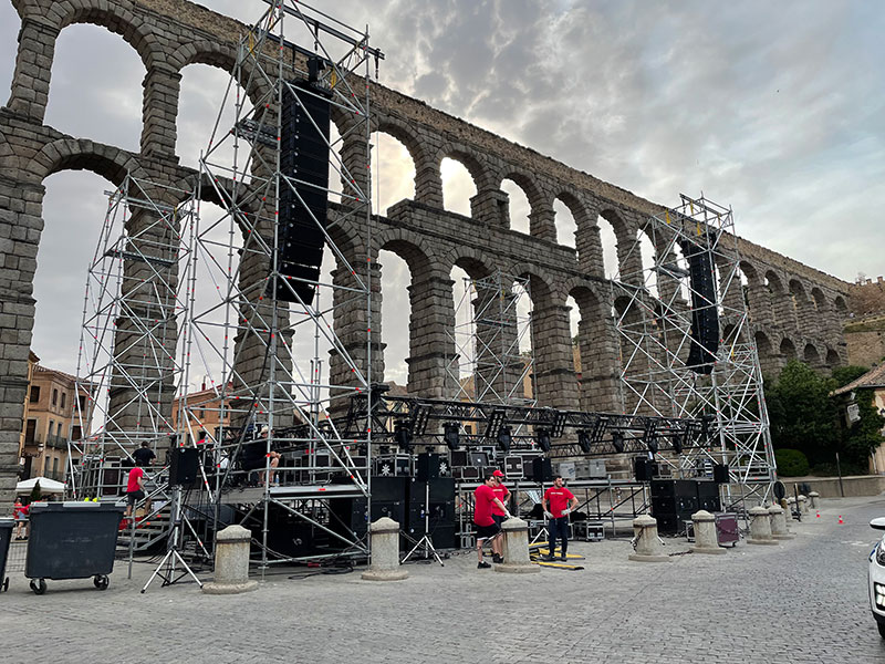 Montaje del escenario en la plaza Oriental.