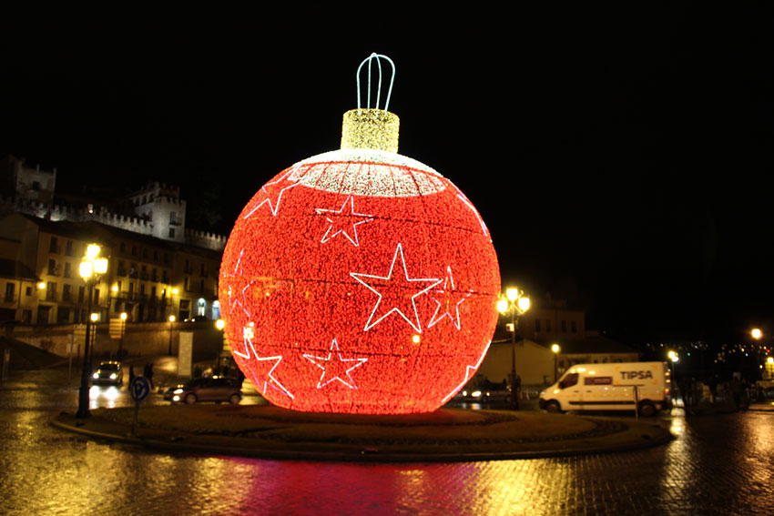 Pero la guinda, o guindaza, son los 14 metros de altura y 10 de diámetro de la bola navideña instalada en la rotonda de la plaza de Artillería. Ciertamente espectacular.