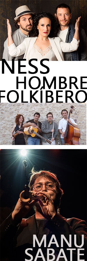 Las actuaciones de pago se completan con el folc fusión del graier catalán Manu Sabaté y su Ina Impro Quartet; la cantante y chelista franco-argelina Nesrine Belmokh, en sesión conjunta con el Hombre Folkíbero.