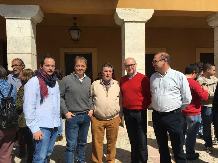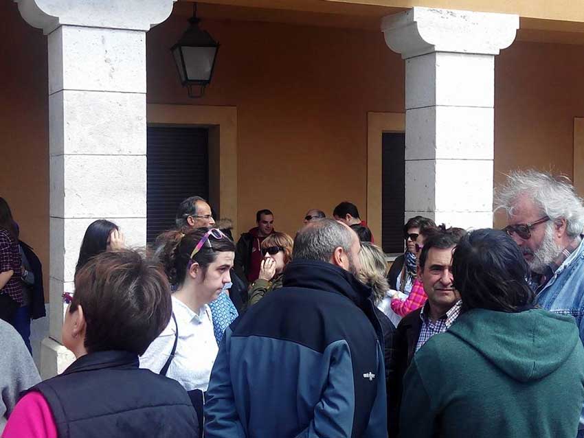 Por la mañana, Natalia del Barrio y un grupo de militantes de Podemos (en la imagen) participaba en la recogida de firmas organizada por la plataforma para condenar los hechos. “Hoy en Fuentepelayo, con los vecinos/as. Y en contra de todos los actos violentos ocurridos los últimos días. No más pueblo sin su gente. ‪#‎FueraCaciques‬”, explicaba la procuradora.