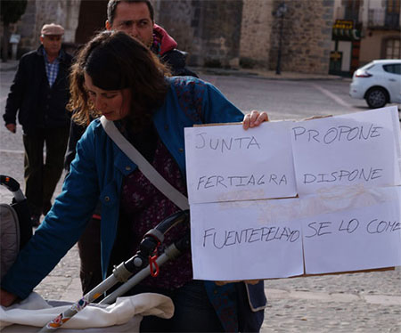 Y bien gordo. Los olores -nauseabundos- de la planta de compostaje y de residuos orgánicos de Agrogestión y Aplicaciones Mediaombientales SL en la localidad de Fuentepelayo, se está convirtiendo en argumento electoral tras cinco años de pestilencia. El pasado 5 de diciembre, tal como publicó Cuellar7.com, un centenar de vecinos se manifestaban contra la planta. La protesta obtuvo amplificación mediática con la presencia del procurador de Izquierda Unida en las Cortes de Castilla y León, José Sarrión, de campaña en Fuentepelayo (en la imagen inferior visitando la zona donde se acumulan los residuos), que en diálogo con los vecinos explicó que en los últimos meses ha requerido información a la Junta sobre la situación. Rápido de reflejos, el PSOE, a través del procurador José Luis Aceves, presentaba el 14 de diciembre, en las Cortes dos iniciativas más solicitando información sobre las licencias, permisos y autorizaciones ambientales de la conflictiva planta.