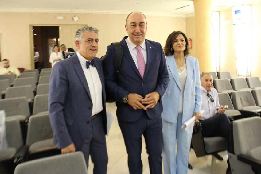 De todo ello se dio cuenta en el pleno. Que empezó con entrada glamurosa del presidente y sus dos vicepresidentes, Chema Bravo con elegante pajarita, De Vicente ajustado y moderno traje azul con corbata rosa, y traje pantalón azul celeste para Sara Dueñas. De festivo blanco roto, casi de novia, Otero,  y traje gris con corbata a juego de su comilitón, Ángel Jiménez.