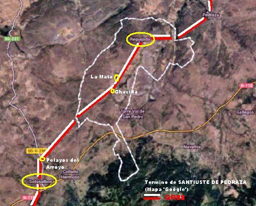 La calzada, beneficiada por la concentración parcelaría, es ancha y apisonada hasta la cotera con los términos municipales de La Salceda y Santiuste de Pedraza.