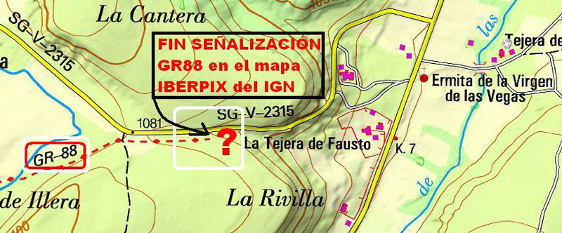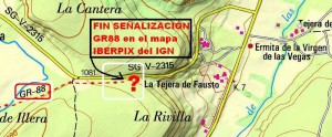 El Mapa del visor en Red ‘IBERPIX’ del Instituto Geográfico Nacional, termina en Requijada su trazado del GR88.