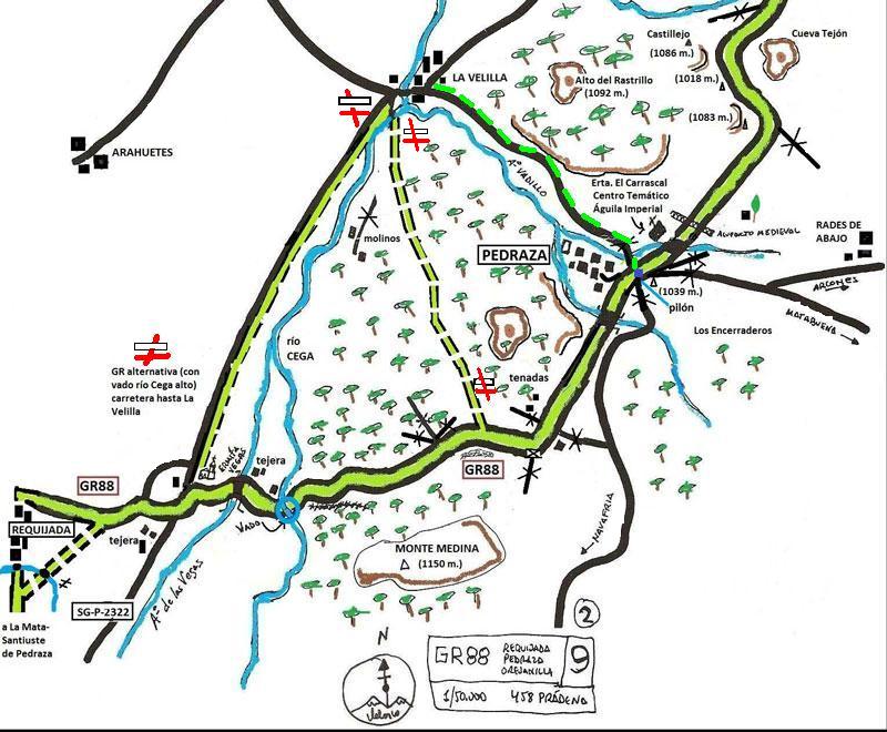 GR88 croquis recorrido ermita de Las Vegas (Requijada) - Pedraza de la Sierra.
