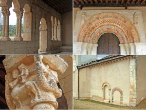 Su pórtico tiene bellos capiteles románicos, adornados con animales mitológicos, bustos humanos… al igual que los canecillos en cornisas y sus tres ábsides. Las arquivoltas de la portada muestran restos de pintura policronada; el interior del templo ofrece una interesante muestra de pintura mural.