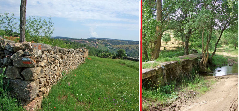 GR88 vista de Pedraza desde las tenadas y paso del arroyo ‘Vadillo’ por el puente ‘Pozo Carro’.