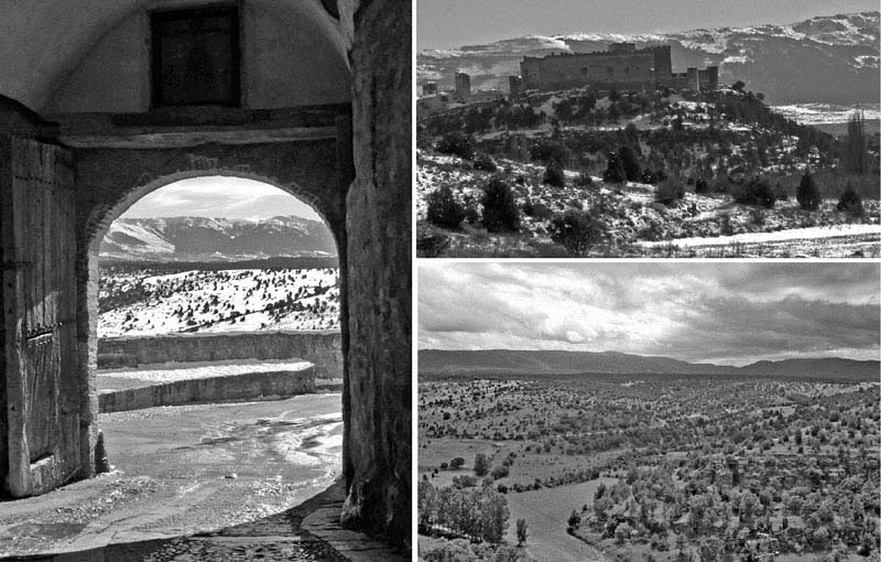 puerta de entrada, castillo y valle del arroyo Vadillo de Pedraza de la Sierra.