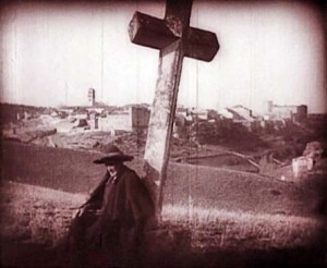 Fotograma de la película ‘La Aldea Maldita’ con Pedraza al fondo.