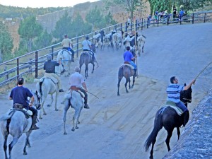 Pedraza, caballistas con los cabestros camino de la puerta de la Villa.