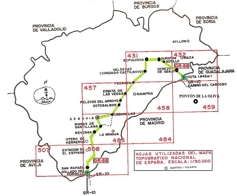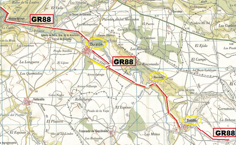 Proseguimos por el antiguo Sendero de Gran Recorrido -GR88-. Hemos recorrido hasta Sepúlveda unos 105 kilómetros desde el Collado del Hornillo, en el límite de los Pinares Llanos abulenses con San Rafael.