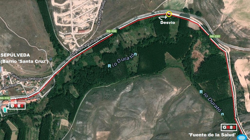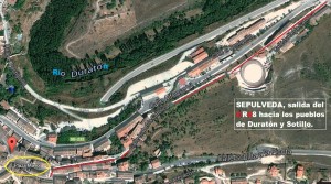 La carretera cruza el barrio de Santa Cruz, donde están enclavados algunos centros de educación y la zona deportiva de Sepúlveda –ver plano Google 01-.