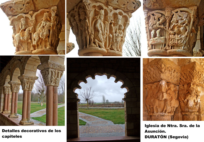 La puerta de arcos lobulados del mediodía o en los canes y las metopas de su cornisa donde podemos observar labores cotidianas, temas vegetales y fauna mítica, como en Duratón.
