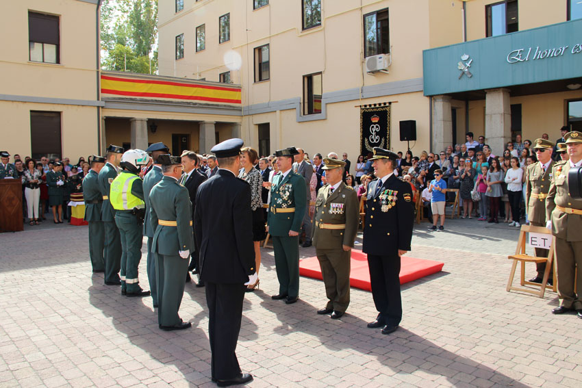Que sustanció agradeciendo el trabajo de todos los departamentos y secciones a sus órdenes, también a las administraciones que en Segovia cooperan con ellos, especialmente los otros cuerpos de seguridad del Estado y a la Diputación de Segovia, a la que se concedió la distinción de Amigo de la Guardia Civil de Segovia 2017. Y lo ejemplificó en las 38 condecoraciones y 30 “felicitaciones con anotación” cosechadas este año por el cuerpo, y en dos menciones especiales, el récord de la comandancia en condecoraciones, cabo Raúl Sanz del puesto de Cuéllar, y en el agente Luis Miguel Gómez, asignado a Martín Muñoz. Este último a cuento de una felicitación de la Guardia Civil de Valladolid, que movilizada por un aviso de accidente en la N-601 de su demarcación, al llegar al lugar se encontró a un “paisano”, preceptivamente vestido con reflectante, ordenando el tráfico, con los testigos perfectamente dispuesto a salvo de los coches, y todo controlado. Era el de Martín Muñoz, que fuera de servicio se vio en el brete y se puso a trabajar.