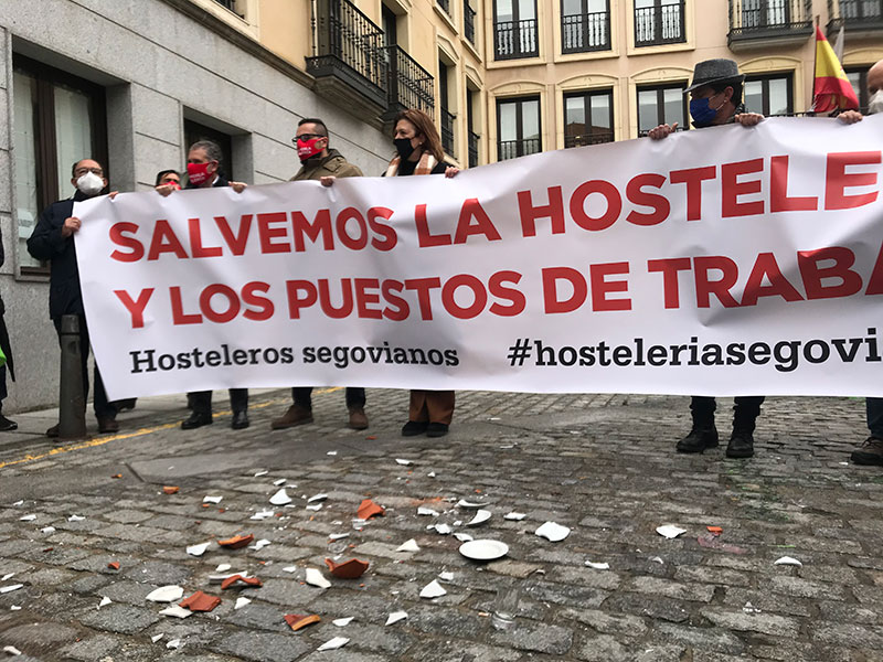 Como modo de protesta, los manifestantes rompieron platos ante ambas sedes de Gobierno como símbolo del deseo de “no ser los que paguemos los platos rotos” de esta crisis en las que las pérdidas de facturación se calculan en decenas de miles de millones, de acuerdo con los cálculos de la propia asociación, que también habla de la posibilidad de que la situación de “ahogo sostenido desde las administraciones” acabe costando 1,5 millones de empleos y el cierre de miles de negocios en el país. Para la provincia los cálculos son demoledores: al acabar 2021 pueden haber desaparecido la mitad de los bares y restaurantes que había antes de que se desatara la pandemia.
