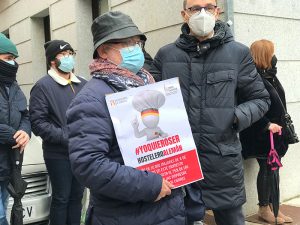 Convocados por la asociación de hostelería y turismo de Segovia (Hotuse-Aihs), unos 150 hosteleros segovianos han vuelto a la calle este 9 de febrero para protestar ante las representaciones de los gobiernos nacional y regional para exigir ayudas directas para un sector que agoniza por culpa de la pandemia y las medidas sanitarias restrictivas.