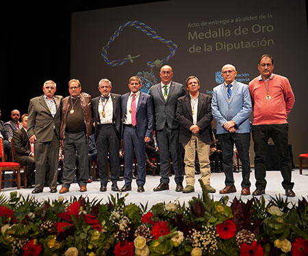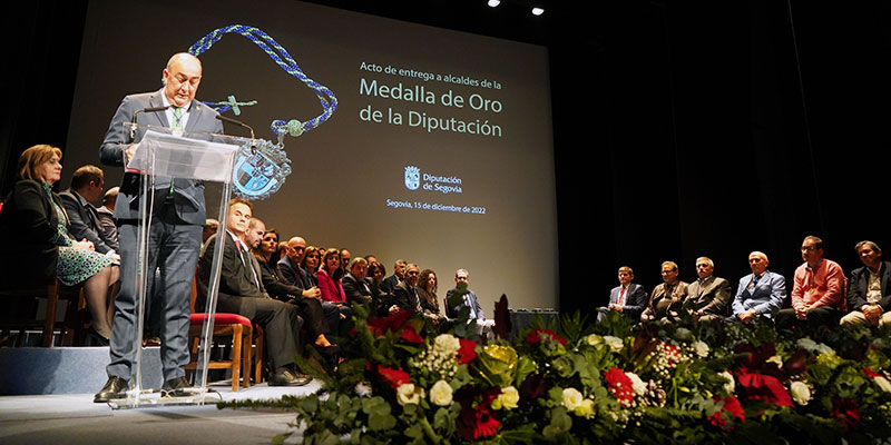 El Teatro Juan Bravo de la Diputación ha albergado este 15 de diciembre el acto de homenaje a siete alcalde de localidades de la provincia que, durante los últimos años, han cumplido más de veinticinco en el cargo. En un acto encabezado por el presidente provincial, Miguel Ángel de Vicente, y con la presencia de la mayor parte de la Corporación, así como de un importante número de regidores y concejales de toda la provincia, los alcaldes de Aldehorno, Jesús Sanz, Condado de Castilnovo, David Yagüe, Fresno de la Fuente, Julián Pablo Horcajo, Fuentepiñel, Jorge Barrio, Pedraza, Pedro Martín, Valleruela de Pedraza, Gregorio Enebral, y el alcalde de San Miguel de Bernuy y vicepresidente segundo de la Diputación, José María Bravo, han recibido la Medalla de Oro de la Diputación.
